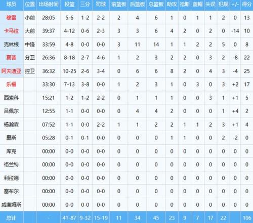 开拓者四人得分上双,阿夫迪亚25分6板8助2断,夏普22分3板2助2断,乐福17分3板3帽。